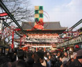 worshipped Buddha statue. Nakamise Shopping Arcade is great for